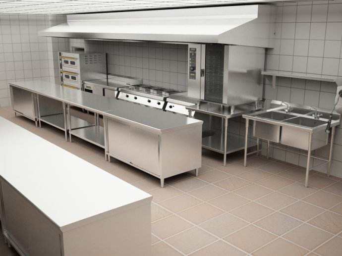 2、灶台和厨房门要采用防火材料.地板防滑、防腐、不吸水,墙壁光滑、瓷砖贴至天花板,均易于清洁、除垢,要保持厨房的洁净,及时清洁使用设备和地面.